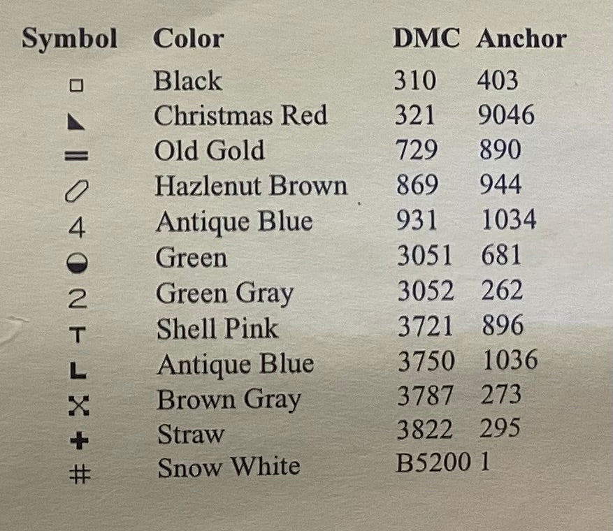 Stitch count: 121 x 57 on 14 count Pebble Gray Aida