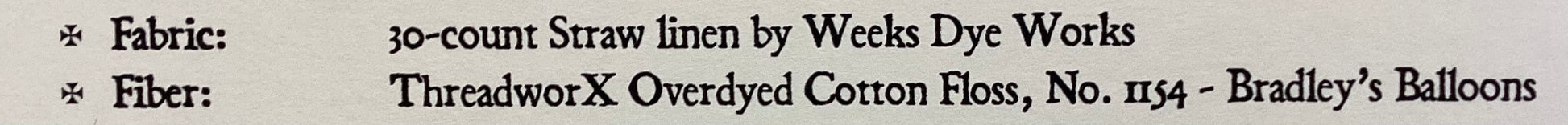 Stitch count: 67 x 67 on 30 count Straw linen by Weeks Dye Work