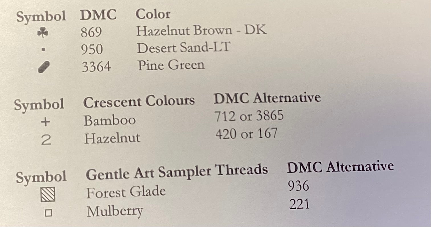 Stitch count: 63 x 62 on 30 count Straw linen from Weeks Dye Works