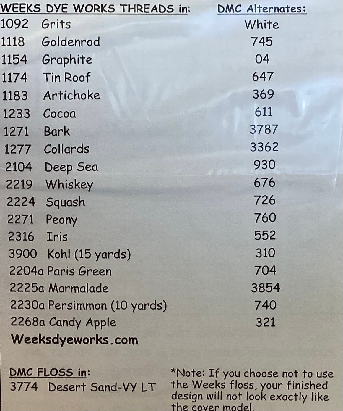 Stitch count: 48 x 48 on 30 count Beige linen from Weeks Dye Works