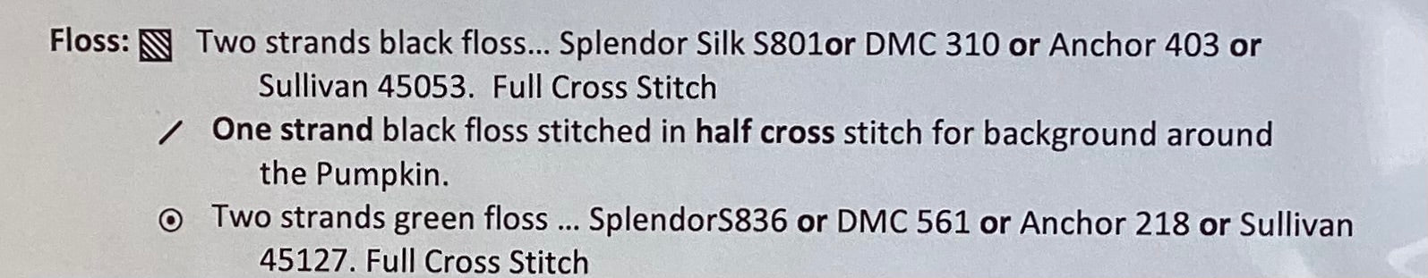 Stitch count: 56 x 56 on 14 count Prank Aida or Tropical Orange Aida or orange Pumpkin Aida