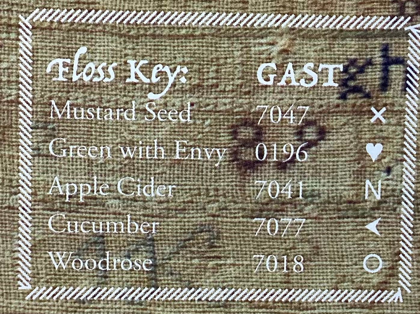 Stitch count: 141 x 43 on 30 count straw from Weeks Dye Works