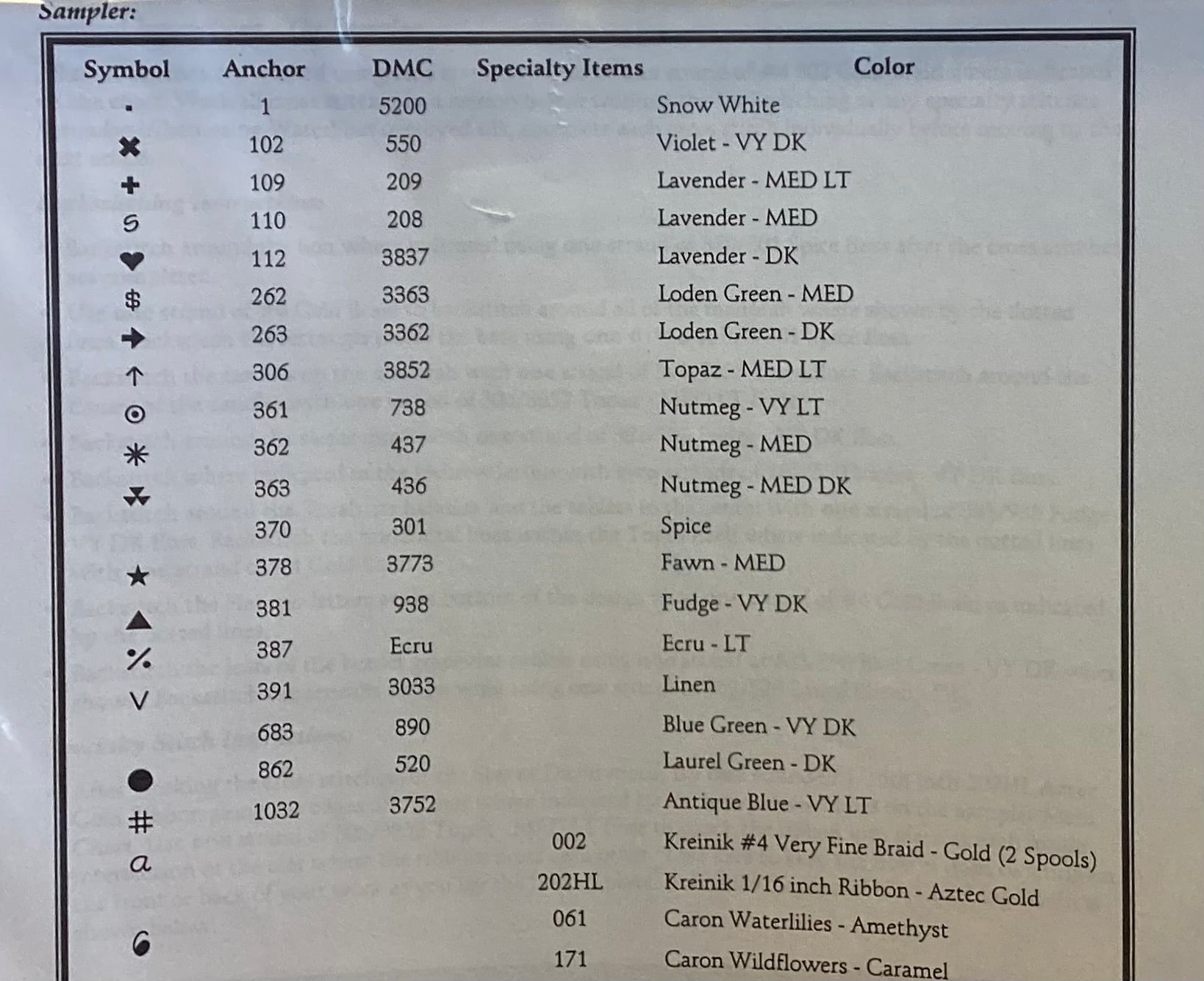 Stitch count: 143 x 165 on 32 count Antique White Belfast by Zweigart