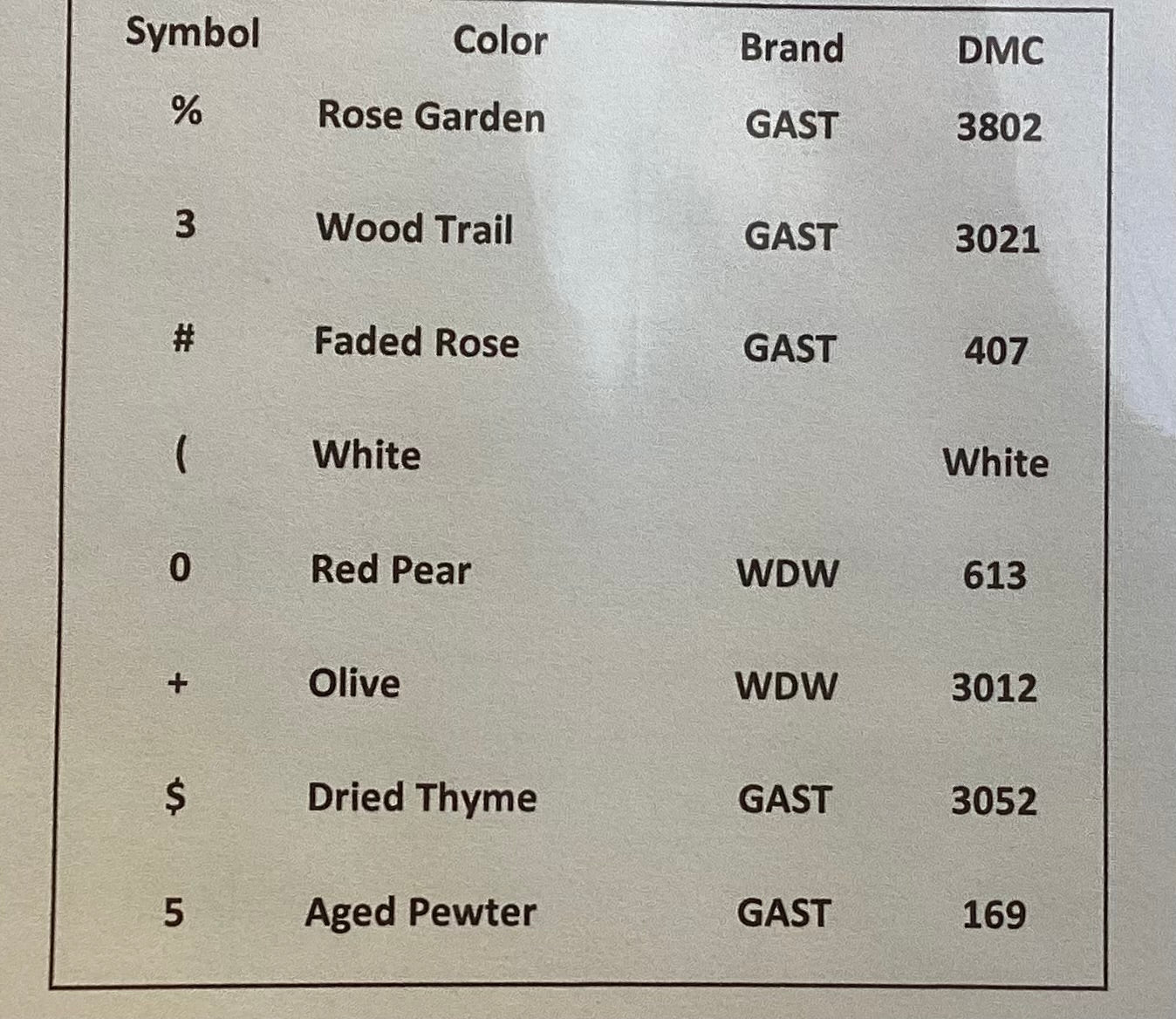 Mini Kit contains: 2 yards of ribbon for edging, backing fabric, chart, and instructions
