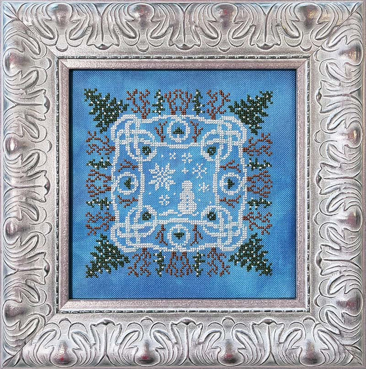 Stitch count: 89 x 89 on 32 count Polar Blue linen by Mystic Fabrics