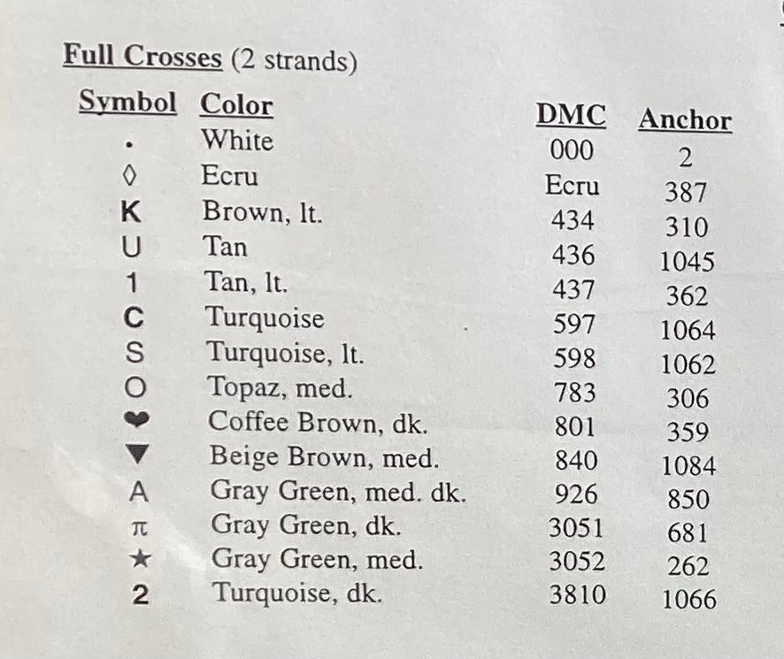 Stitch count: 72 x 119 on 28 count Antique White Monaco from Charles Craft