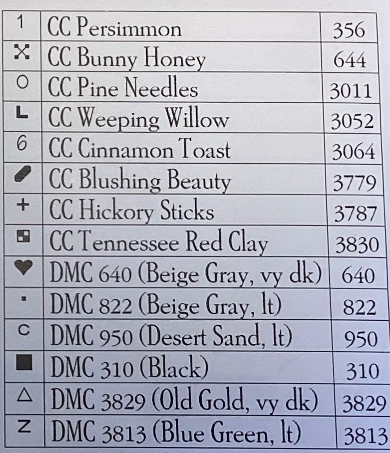 Stitch count: 74 x 70 on 36 count Weathered Shingle by R& R Reproduction