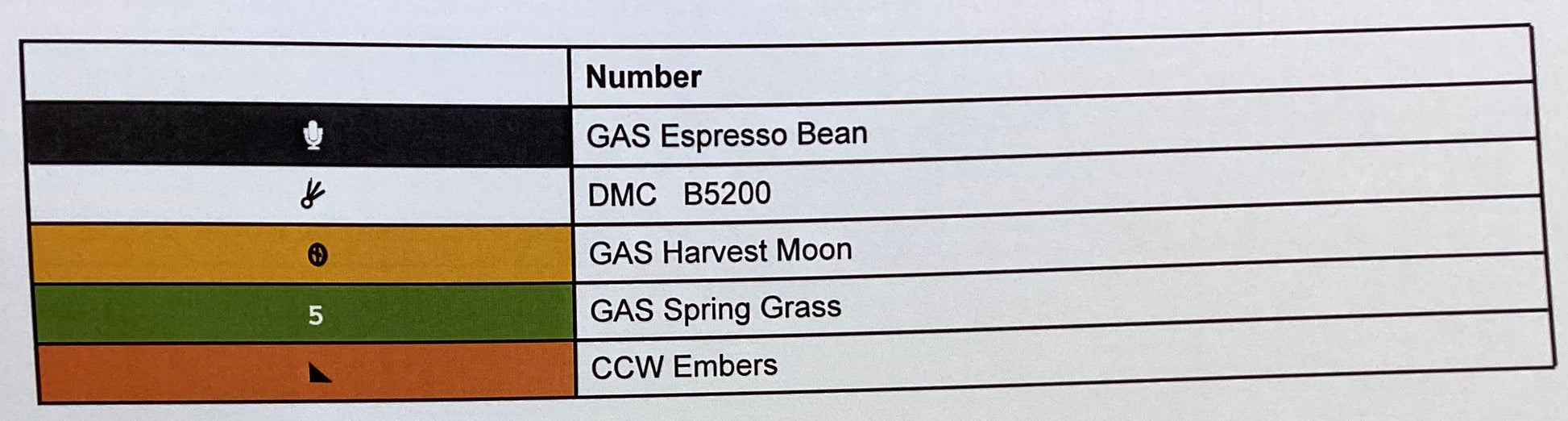 Stitch count: 143 x 77 on 20 count Spicy Mustard by Fiber on a Whim