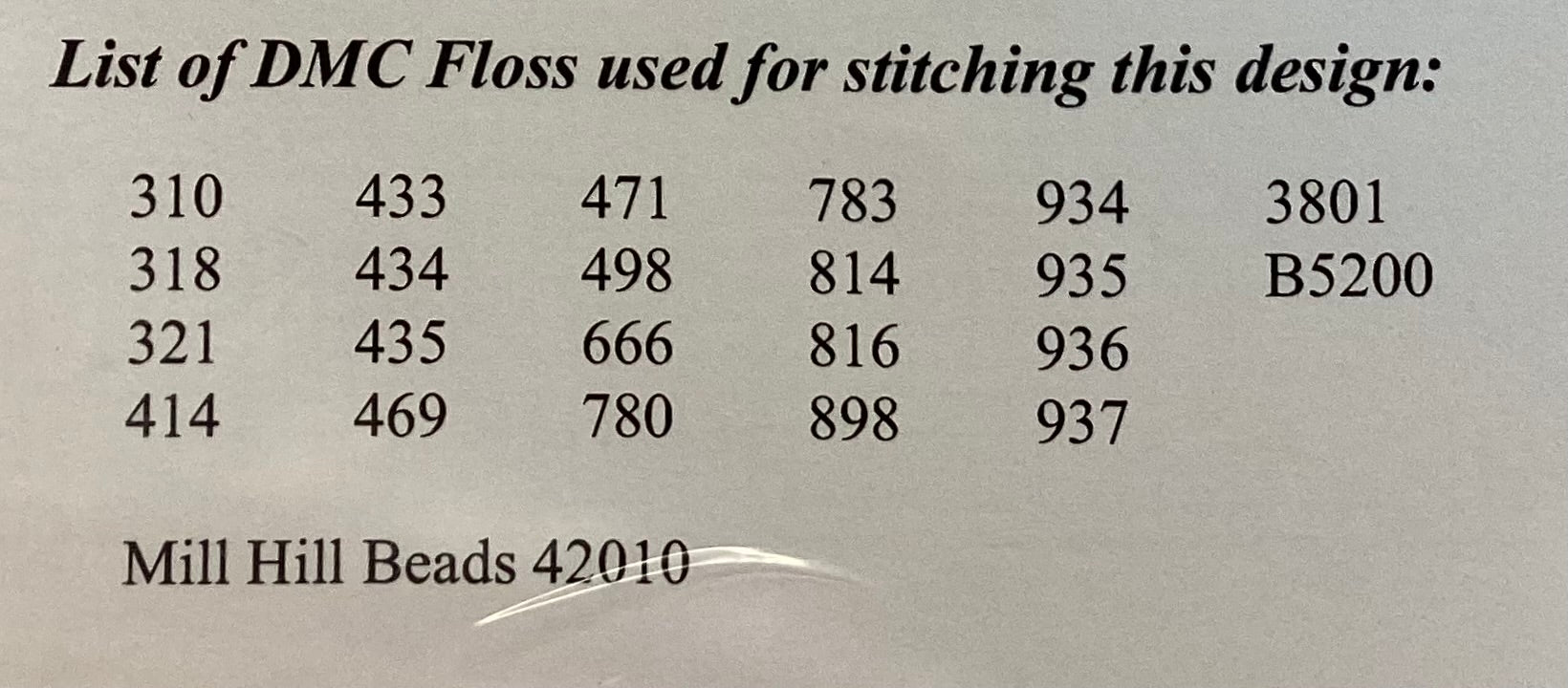 Stitch count: 96 x 108 on 32 count Vintage Smokey White and 32 count Light Ash Gray with white dots both by Zweigart