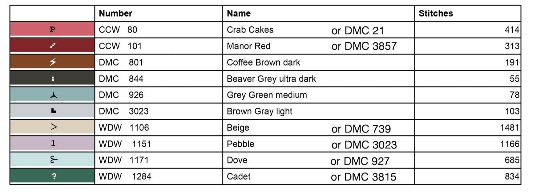 Model is stitched 1 over 2 on 36ct Cocoa by Weeks Dye Works.