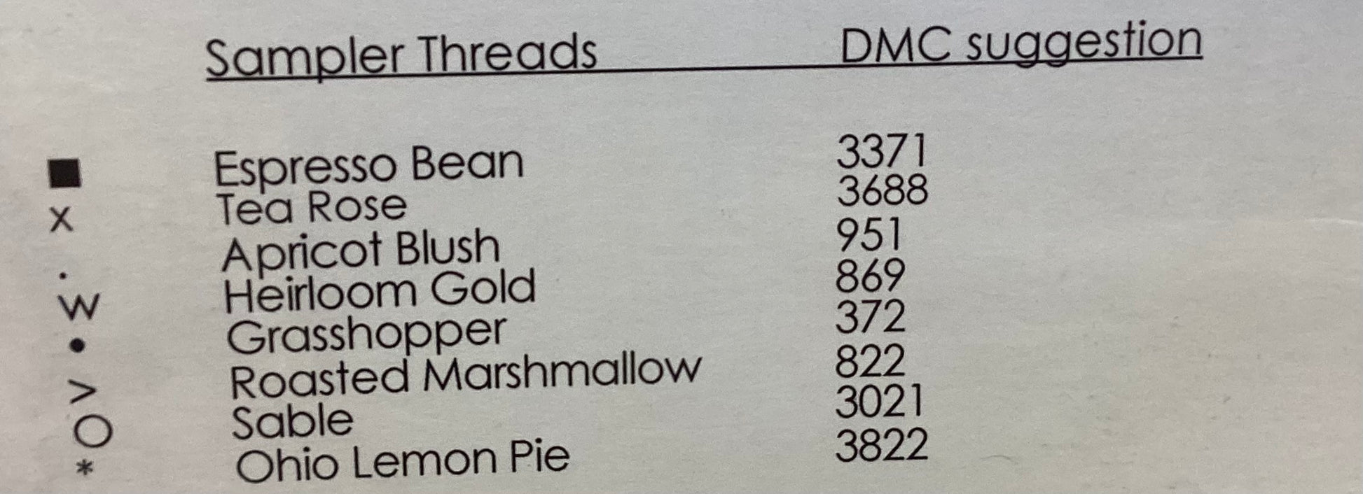 Stitch count: 70x 80 on 30 count Olde Towne Blend by R & R Reproduction
