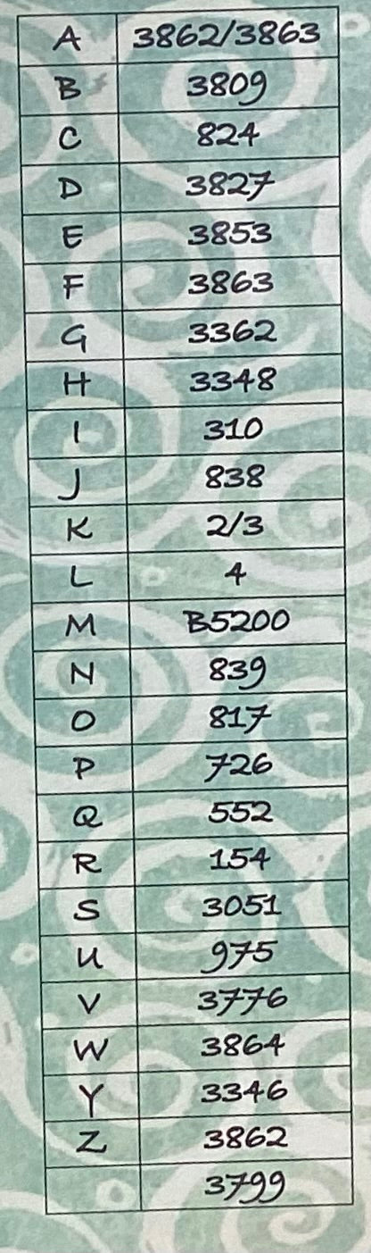 Stitch count: 171 x 80 onn16 count Misty Morning Aida
