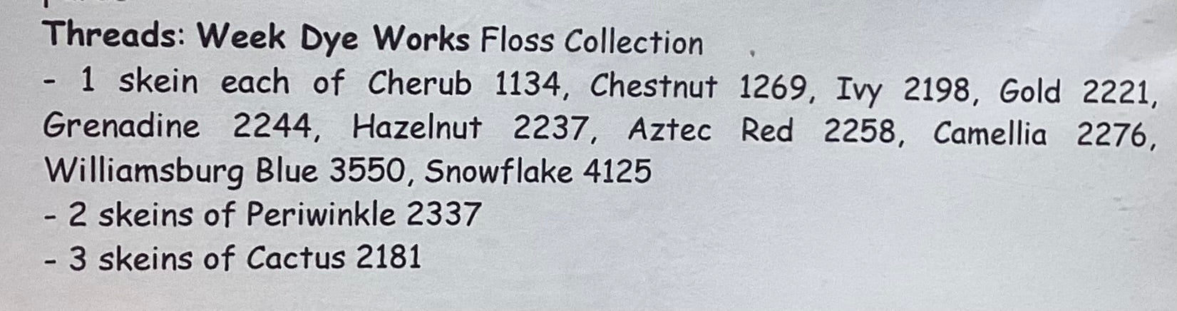 Modeled on 30 count Linen from Weeks Dye Works cut 24 x 11”