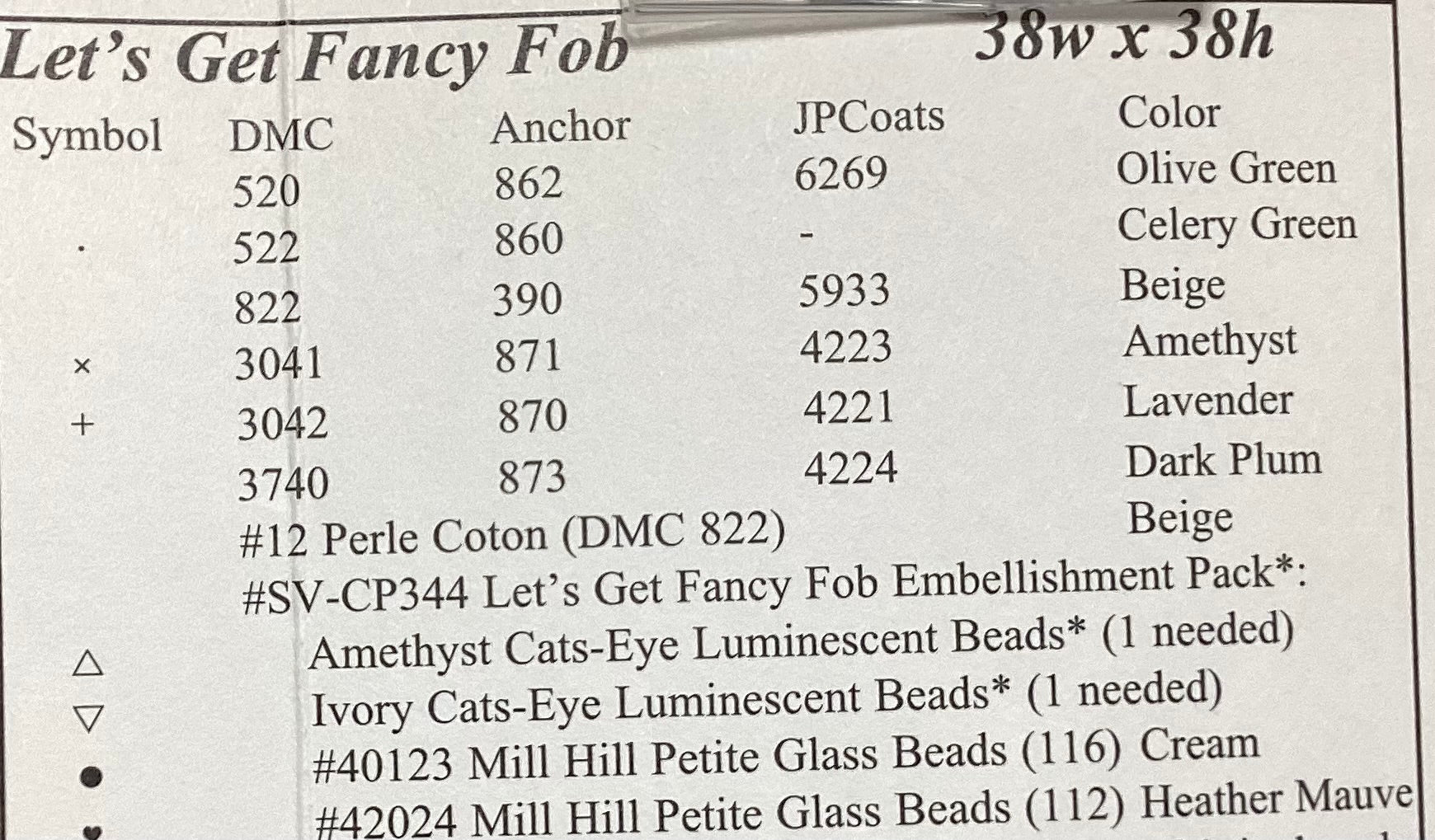 Stitch count: 38 x 38 on 32 count Platinum Belfast
