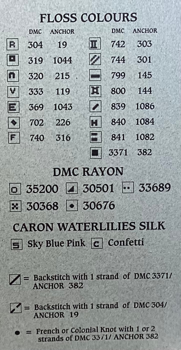 Stitch count: 120 x 180 on 28 count Periwinkle Zweigart Pastel linen