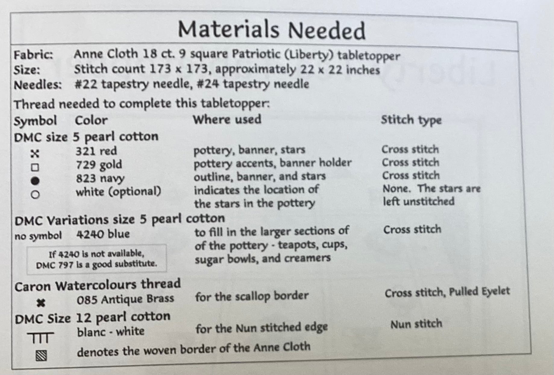 Stitch count:173 x 173 on 18 count Anne Cloth