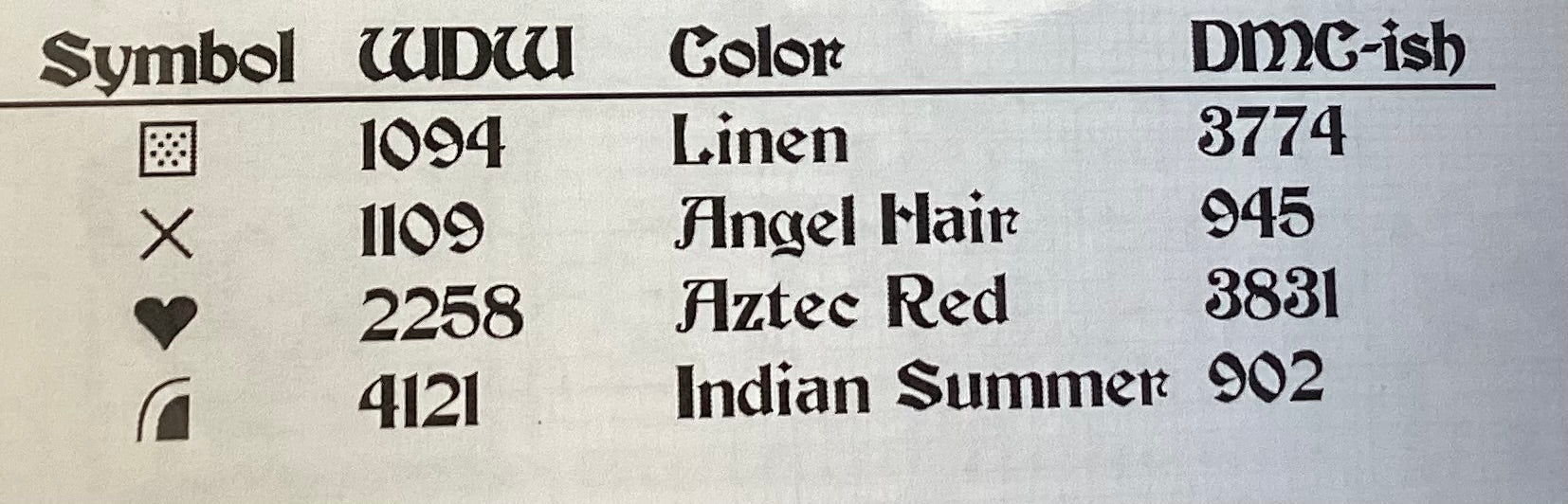 Stitch count: 90 x 118 on 36 count coca linen by Mystic Fabrics