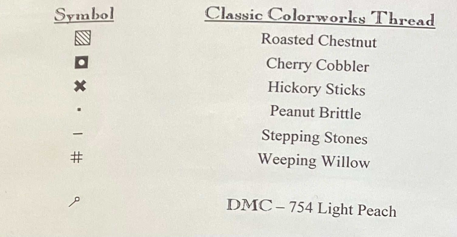 Stitch count: 101 x 84 on 32 count Crème Brûlée Linen from R & R Reproduction