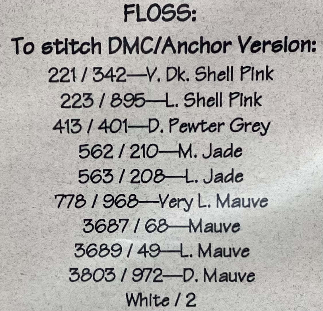 stitch count: 72 x 75 on 28 count Crème French Country linen from Wichelt