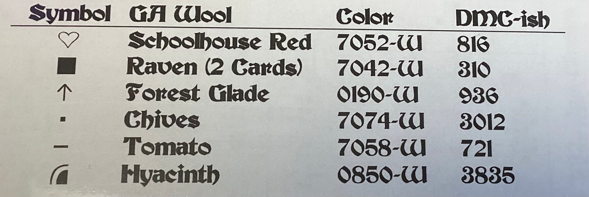 Stitch count: 96 x 88 on 32 count Golden Harvest Belfast