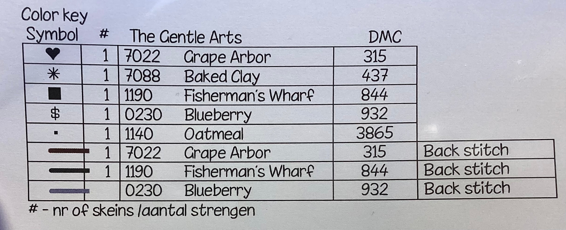 Stitch count: 61 x 141 on 32 count Belfast Zweigart