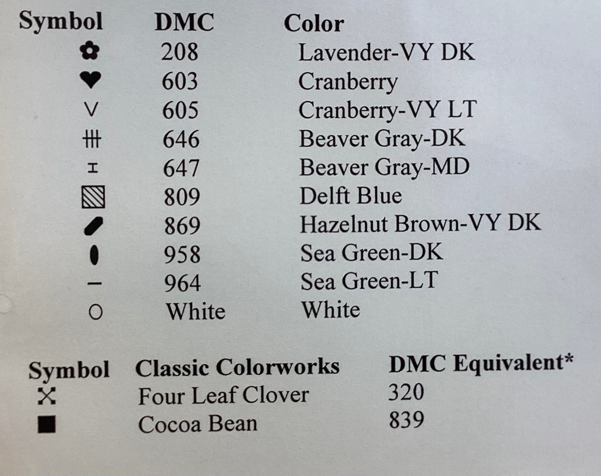 Stitch count: 59 x 83 on 32 count Star Sappire linen by Wichelt