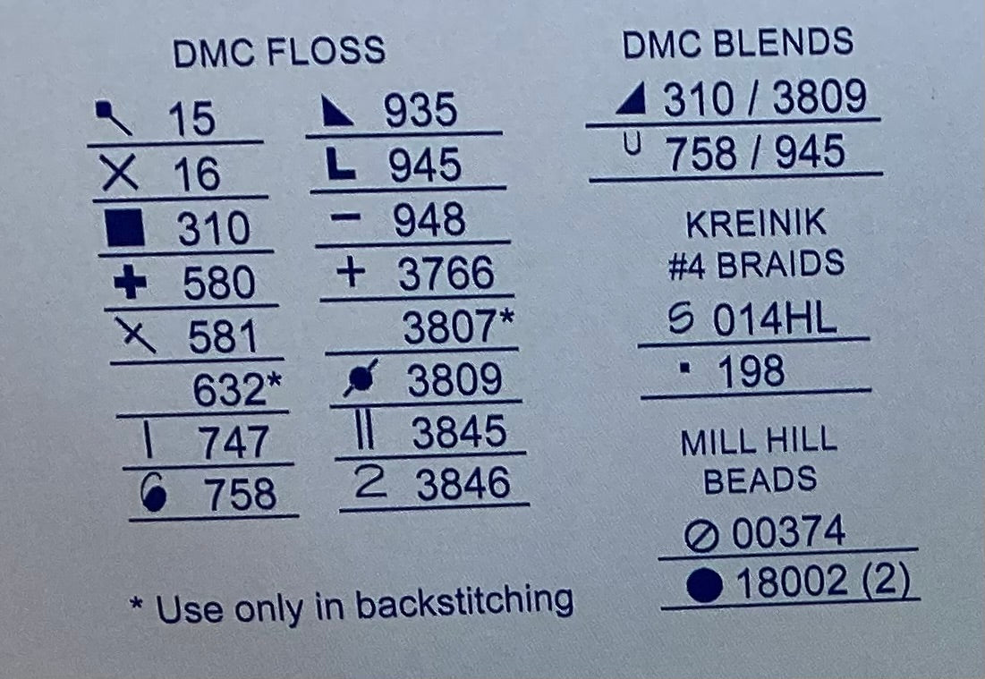 Stitch count: 114 x 171 on 32 count French Lace linen by Wichelt