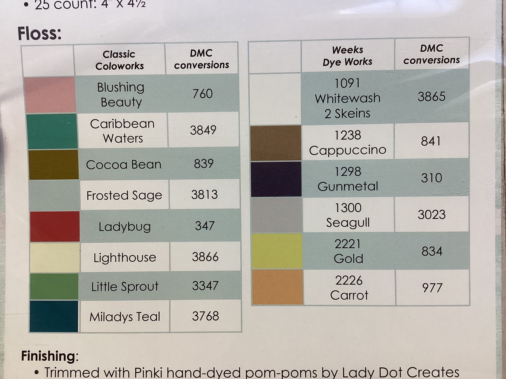 Stitch count: 99 x 107 on 32 count Silver Fox Belfast linen by frisbee on a Whim