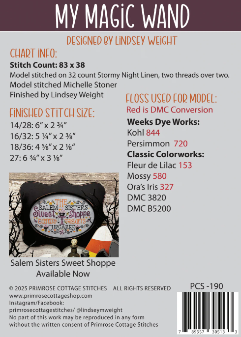 Stitch count: 83 x 38 on 32 count Stormy Night linen