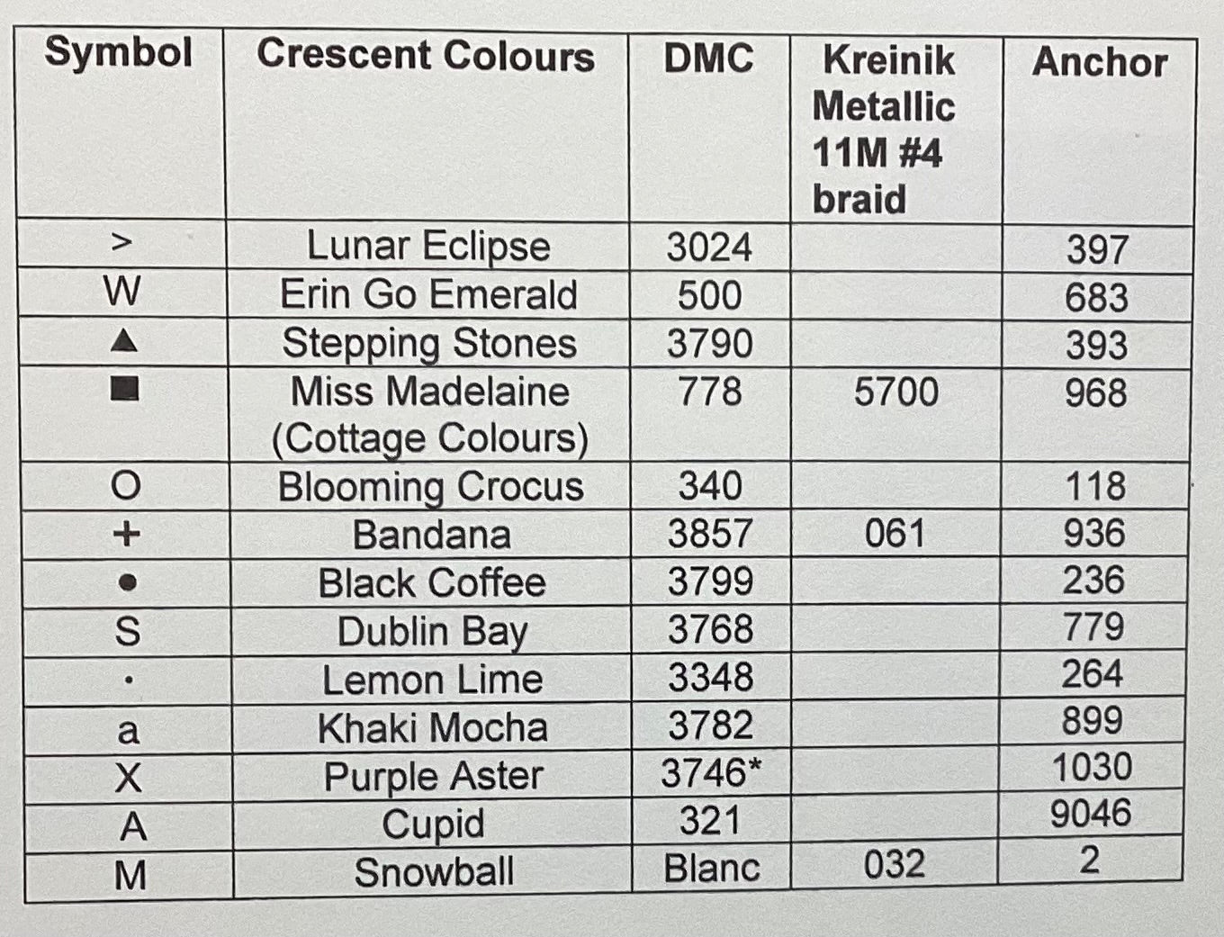 Stitch count: 65 x 65 on 25 count Moss Green Lugana from Zweigart