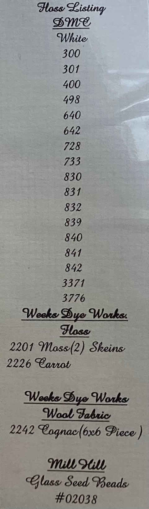Stitch count: 139 x 182 on 28 count Desert Sand linen by Wichelt