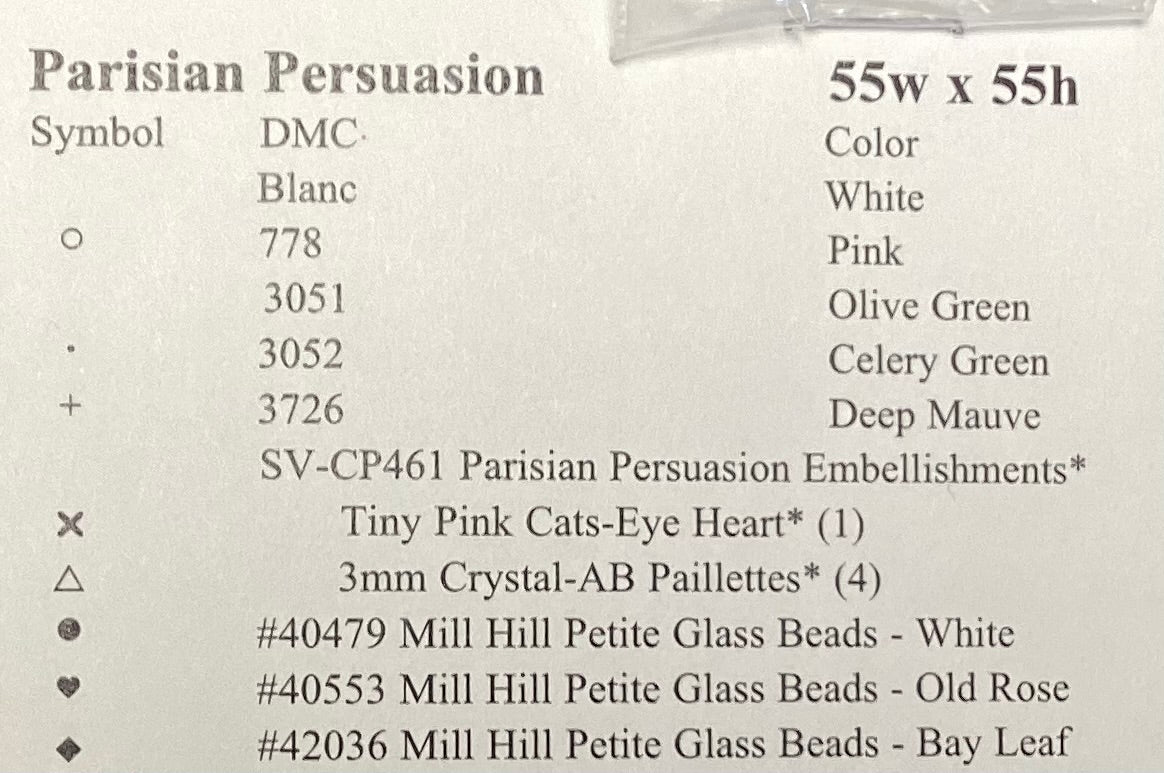 Stitch count:55 x 55 on 28 count Platinum Linen