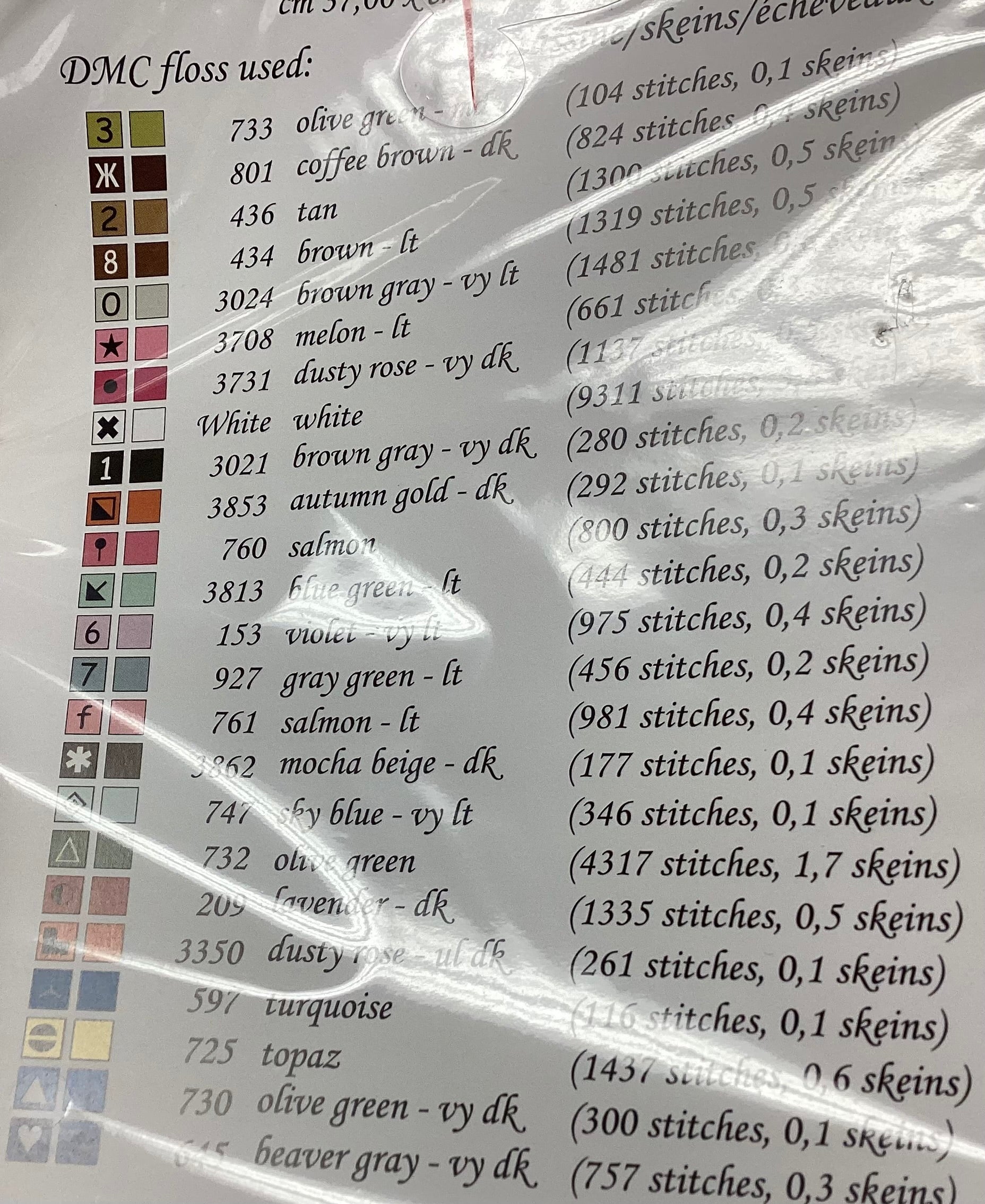 Stitch count:237 x 267 on 32 count Vintage Country Mocha