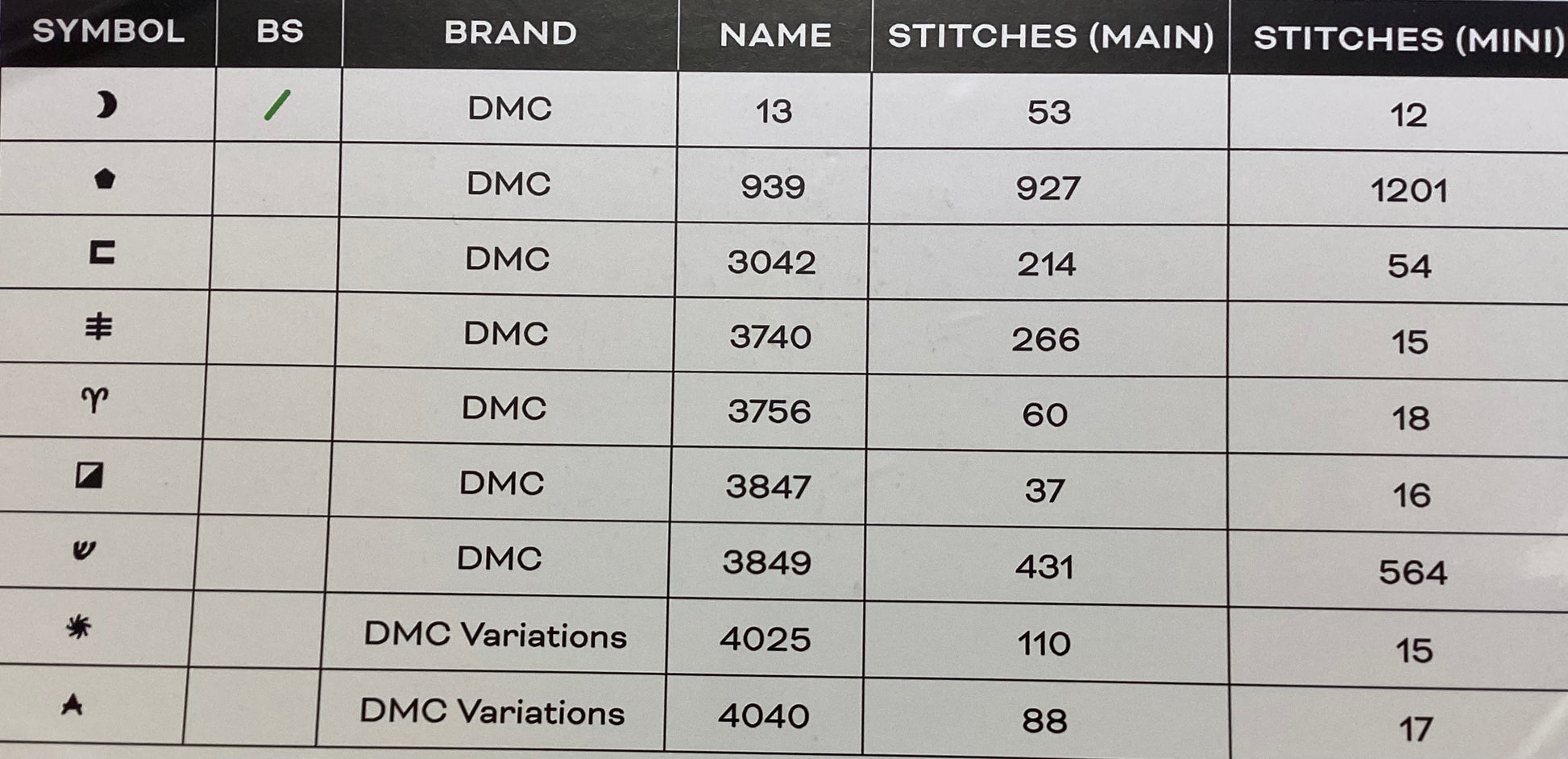 Stitch count : 36 x 116 and 31 x 96 on 14 count Midnight Blue perforated paper by Mill Hill