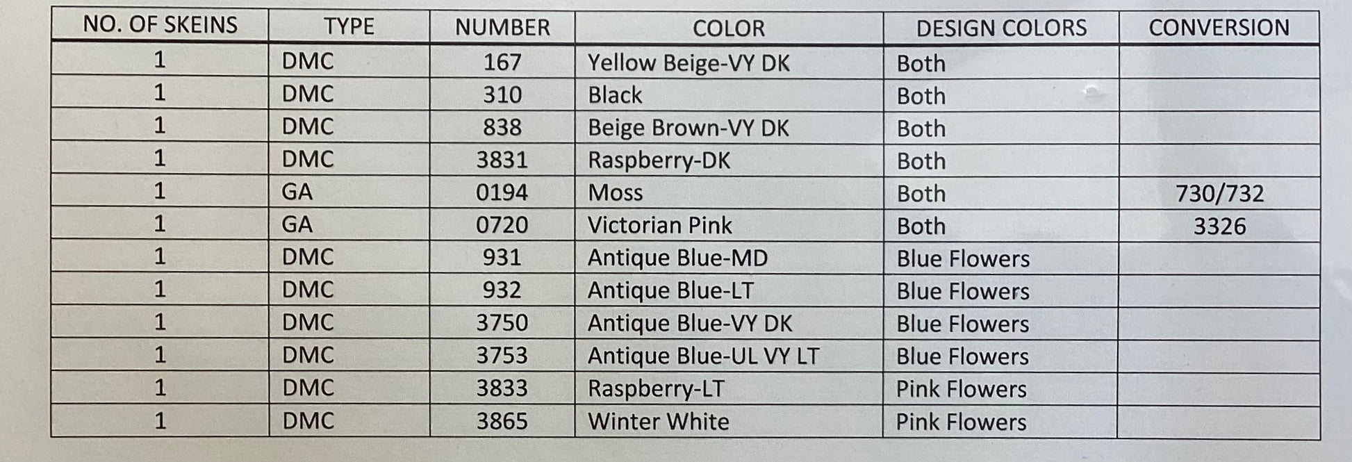 Stitch count: 128 x 101 on 28 count linen from Lakeside Linens
