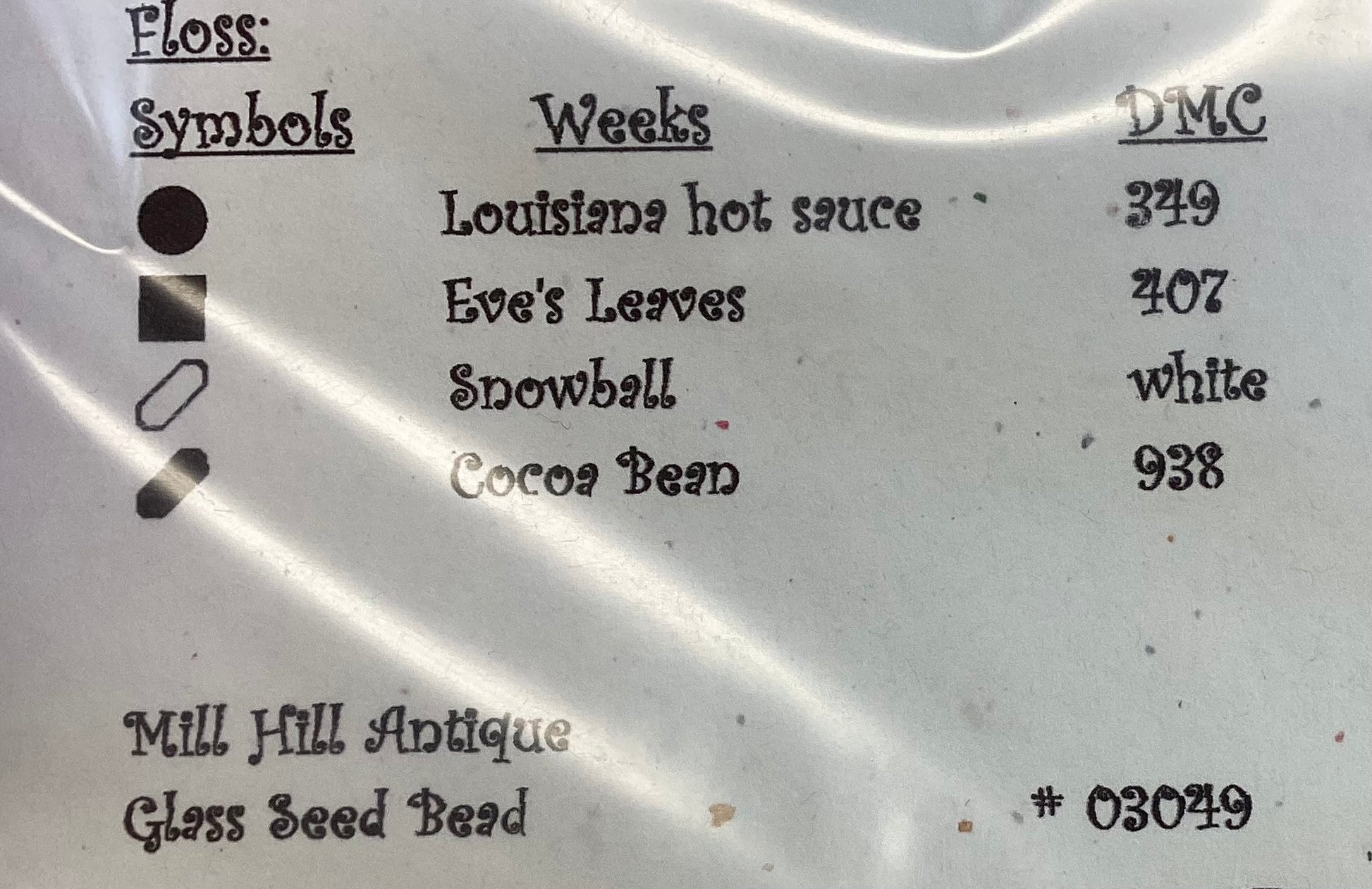Stitch count:70 x 119 on 28 Apple Brown Bindy from R & R Reproduction