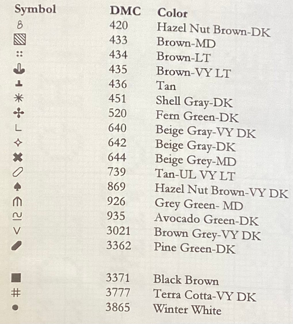 Stitch count: 123 x 161 on 18 count Flax, Cork linen from Zweigart