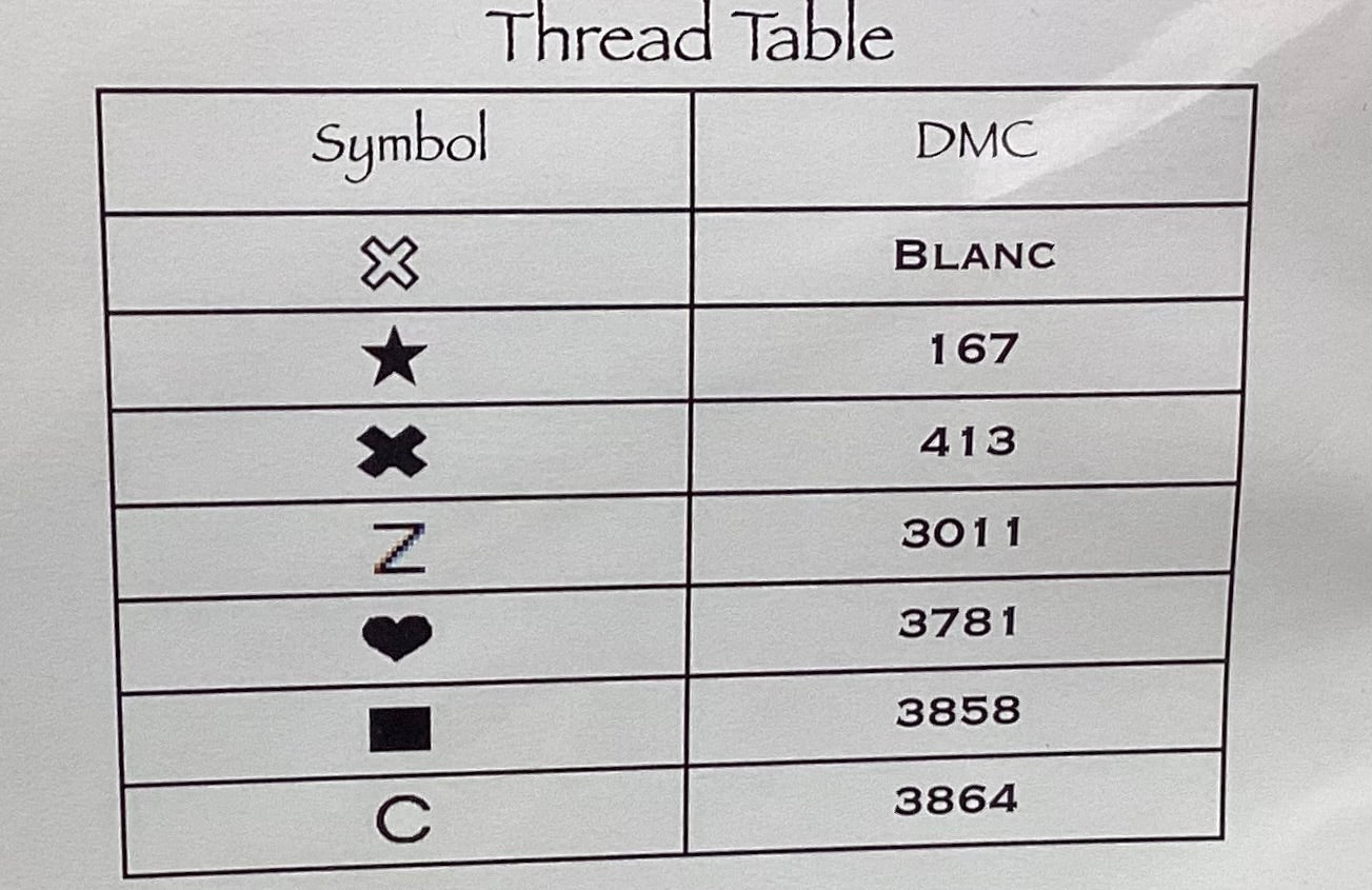 Stitch count: 95 x 92 on 36 count Vintage Country Mocha Edinborough linen