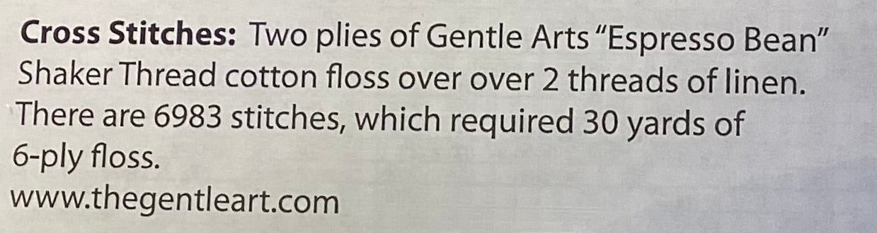 Stitch count: 115 x 115 on 32 count Cyprium linen by Picture This Plus