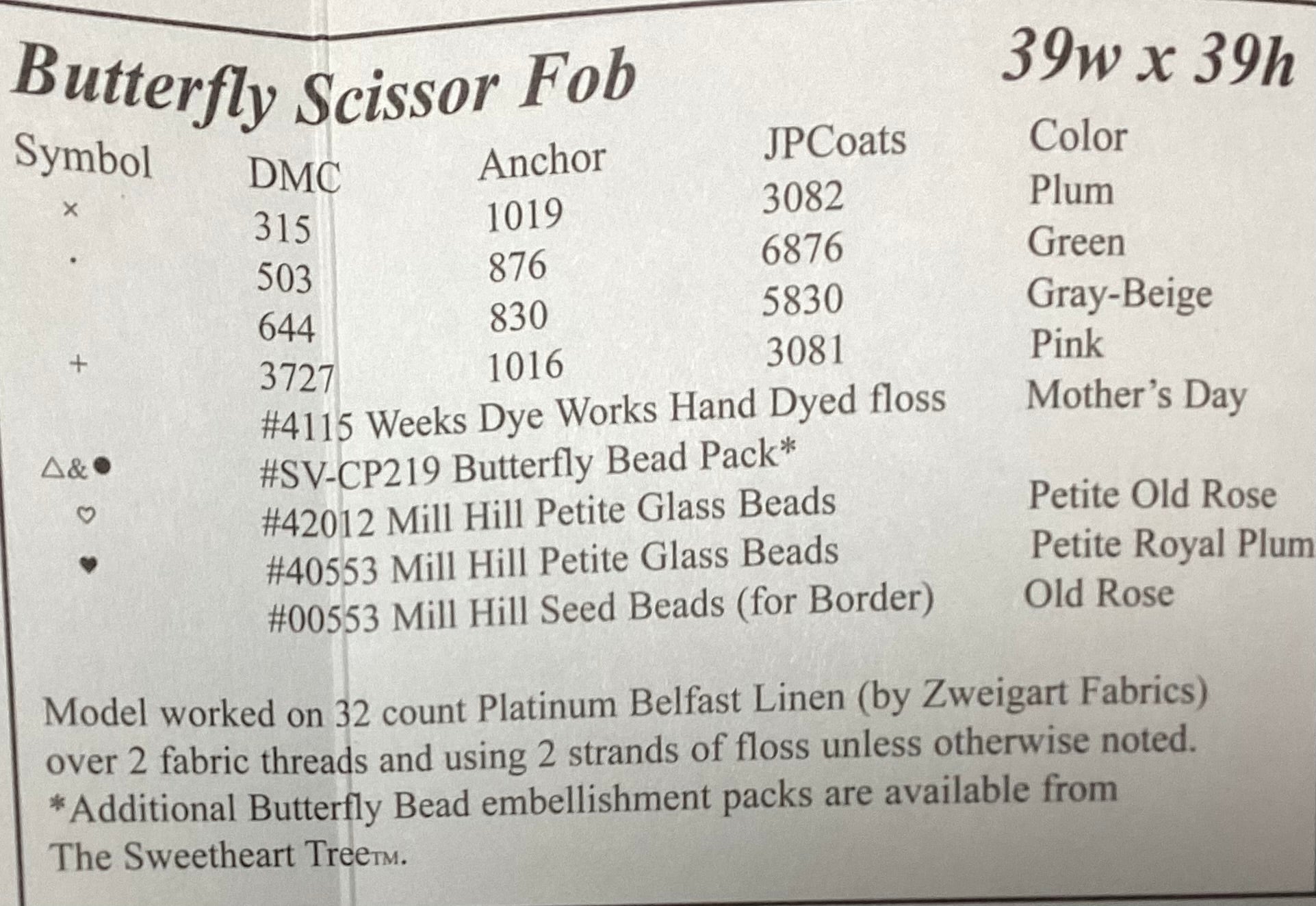 Stitch count: 39 x 39 on 32 count Platinum Belfast linen