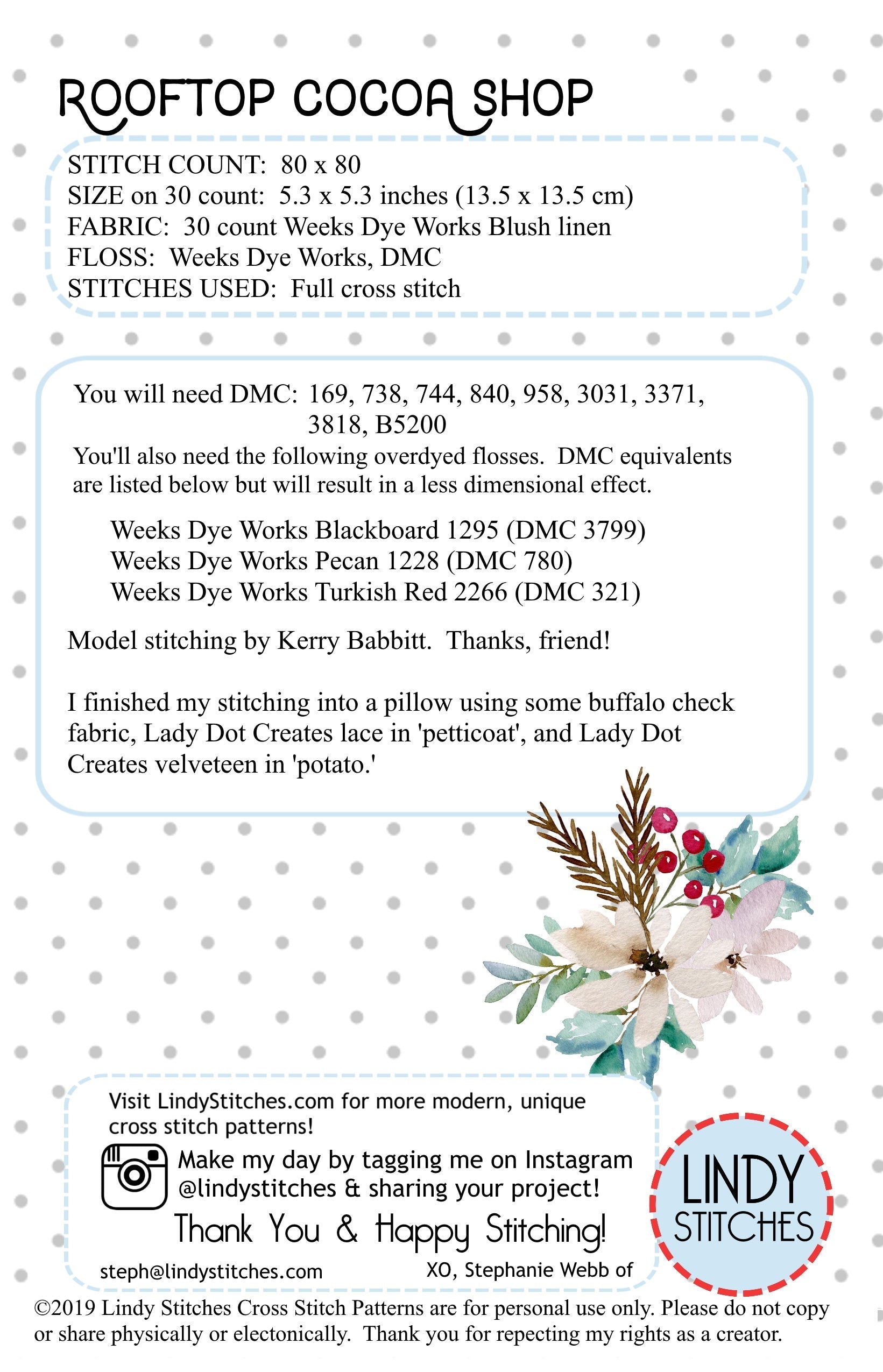 Stitch count: 80 x 80 on 30 count Blush linen by Weeks Dye Works