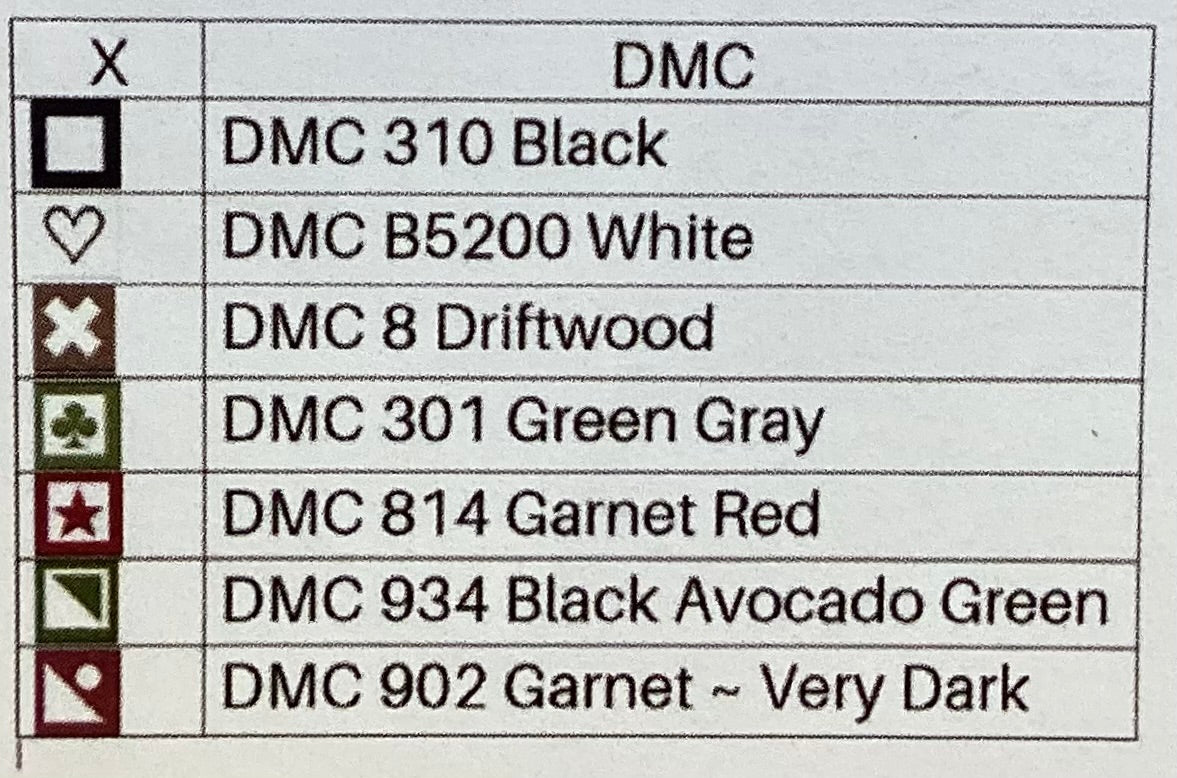Stitch count:64 x 41 on 28 count white Lugana