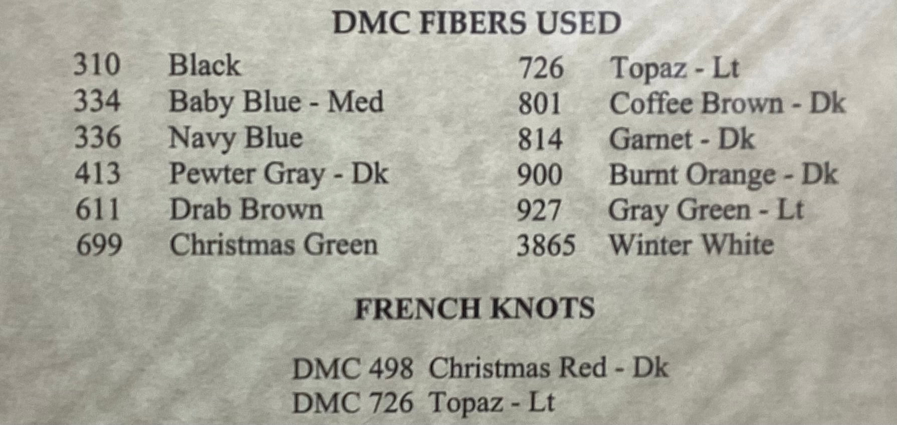 Stitch count: 48 x 47 on 28 count Stormy Grey linen from Wichelt