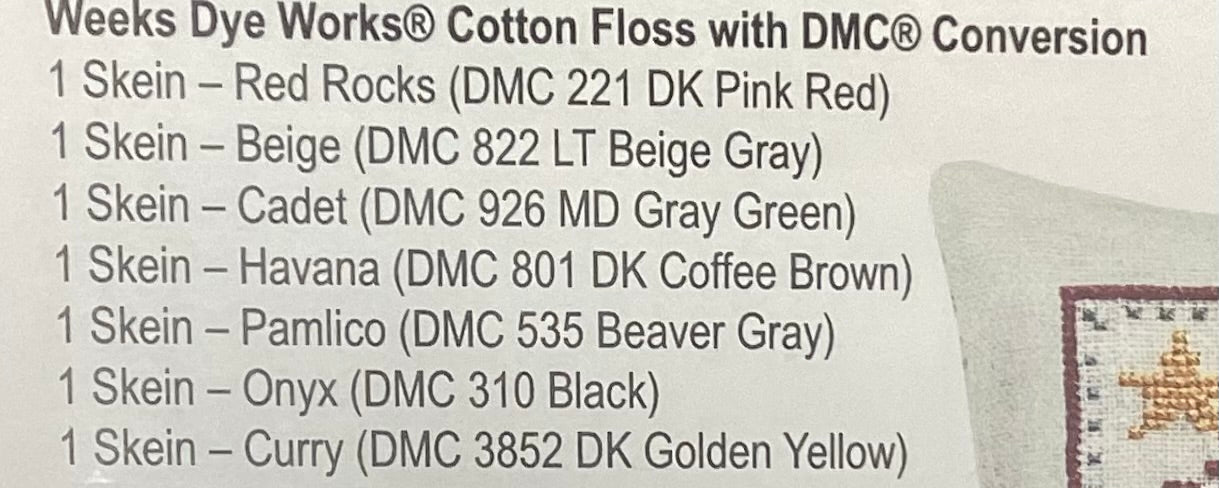 Stitch count: 55 x 100 on 30 count Linen linen from Weeks Dye Works