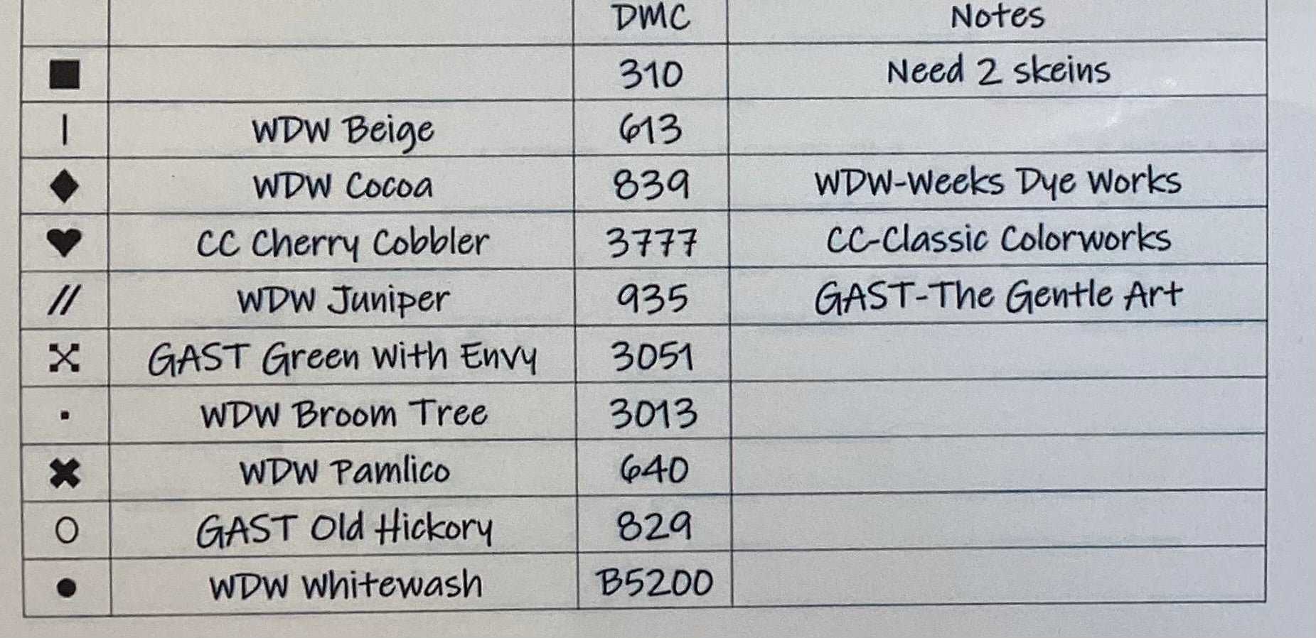 Stitch count: 249 x 183 on 40 count country mocha linen new castle