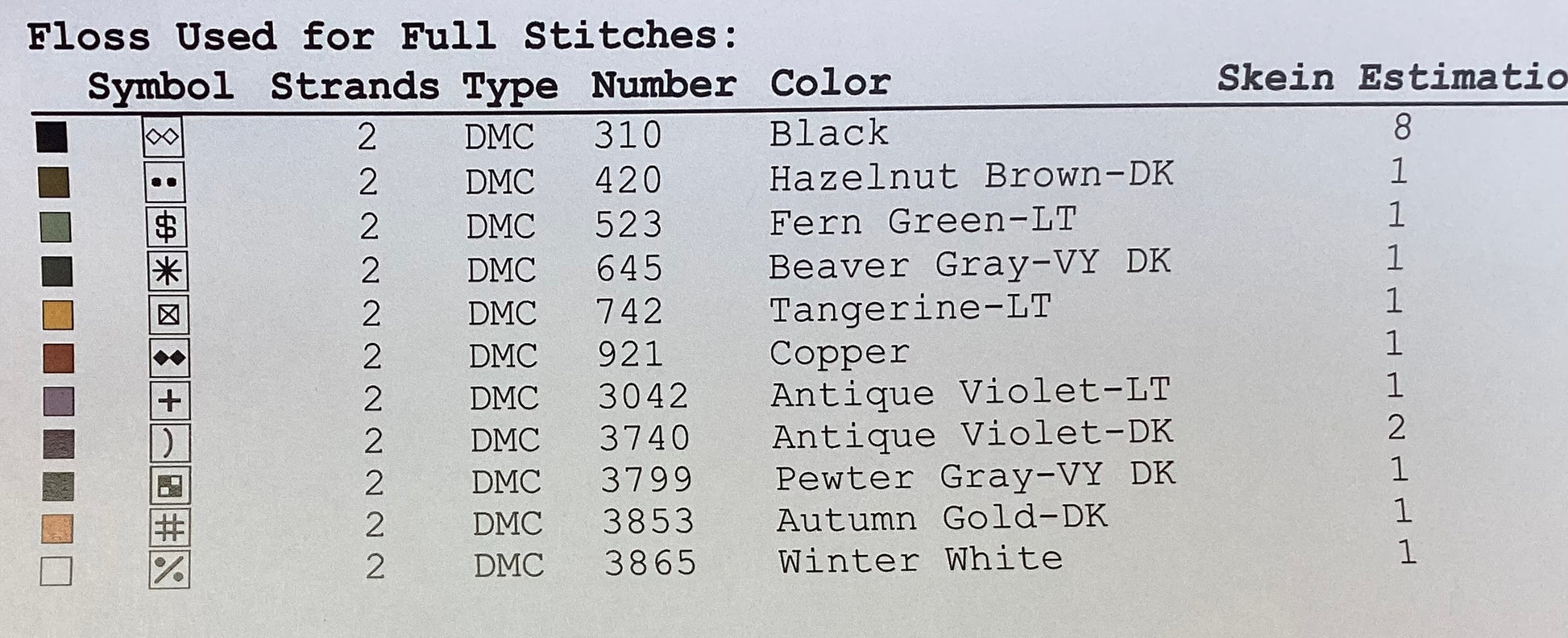 Stitch count: 329 x 313 on 16 count Pewter Grey Zweigart