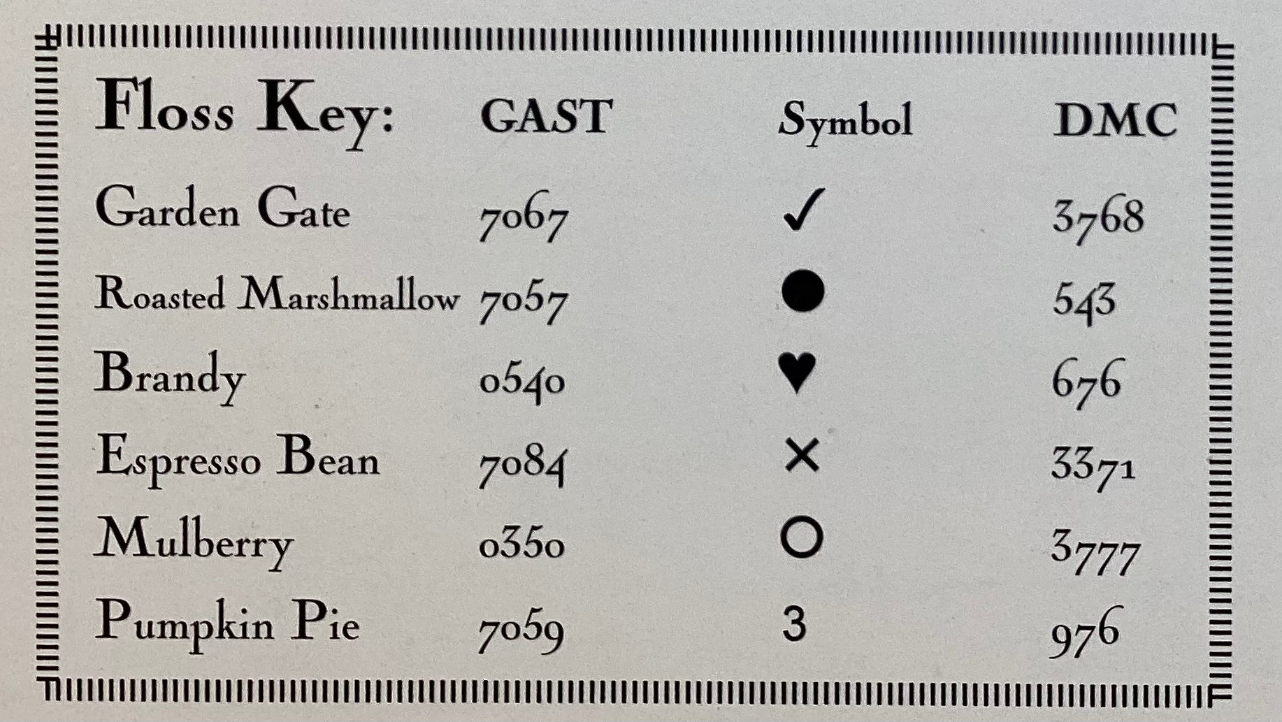 Stitch count: 97 x 81 on 36 count Cocoa from Weeks Dye Works
