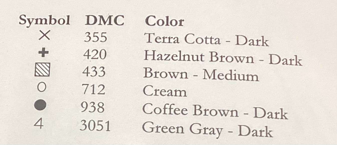 Stitch count: 45 x 63 on 30 count Cocoa Linen from Weeks Dye Works