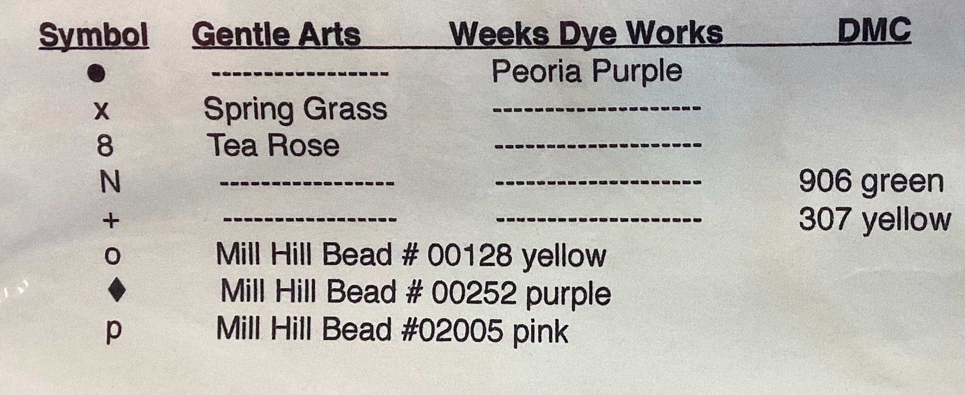 Stitch count: 43 x 56 on 32 count Touch of Yellow linen from Wichelt