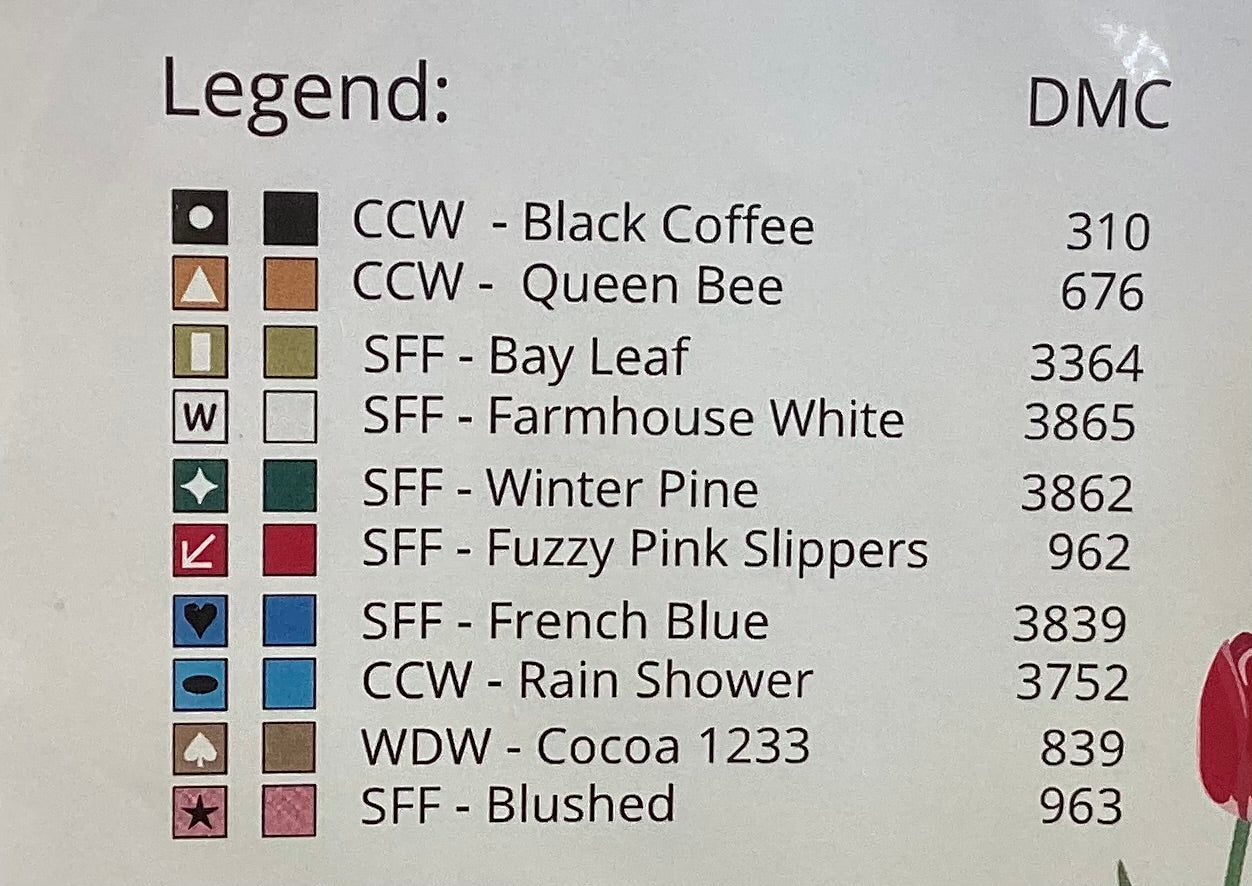 Stitch count: 59 x 90 on 28 count Vintage Country Mocha